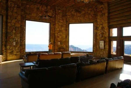The Grand Canyon Lodge North Rim offers you a view that can’t be beat. In the Sun Room, you can relax and look out over the Grand Canyon from a vantage point that the more discriminate traveler appreciates. Originally, built by Gilbert Stanley Underwood, Grand Canyon Lodge – North Rim overlooks the North Kaibab Trail and Bright Angel Creek as it makes it’s way to the bottom of the Grand Canyon. The North Rim Lodge is at a higher altitude than the South Rim and is cooler. The forest setting around the lodge is enjoyable and welcoming as the breeze blows through the ponderosa pine trees.